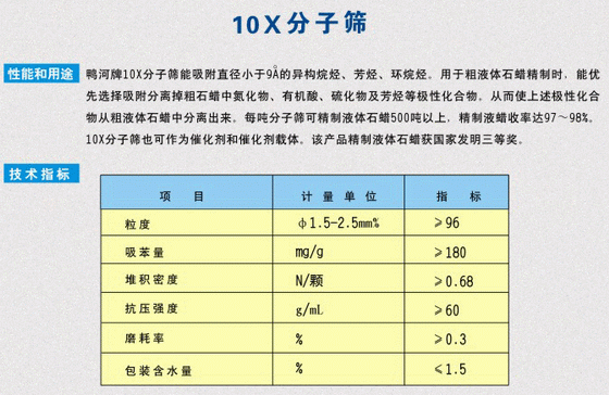 應(yīng)用:主要用于吸附分離芳烴及石蠟精制。