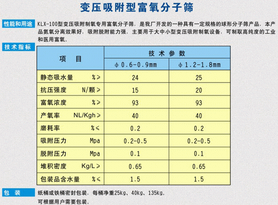 應(yīng)用:除具有一般5A分子篩的特性外,主要用于變壓吸附制氧。