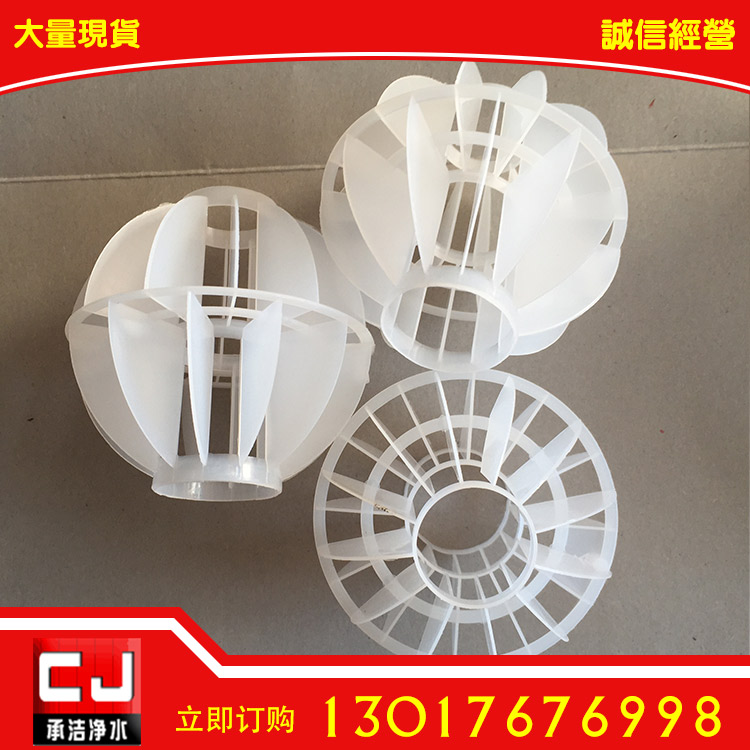 多面空心球,在球的中部沿整個(gè)周長(zhǎng)有一道加固環(huán),在環(huán)的上下各有十二片球瓣。上下球瓣互相交錯(cuò),沿中心軸呈放射形布置。我廠在有關(guān)生產(chǎn)工程塑料的單位幫助下,總結(jié)經(jīng)驗(yàn),證實(shí)該產(chǎn)品具有如下優(yōu)點(diǎn):由于表面積大;傳質(zhì)效率高,產(chǎn)品空面大,且重量輕、強(qiáng)度大、安裝方便、歡迎各有關(guān)部門推廣使用。